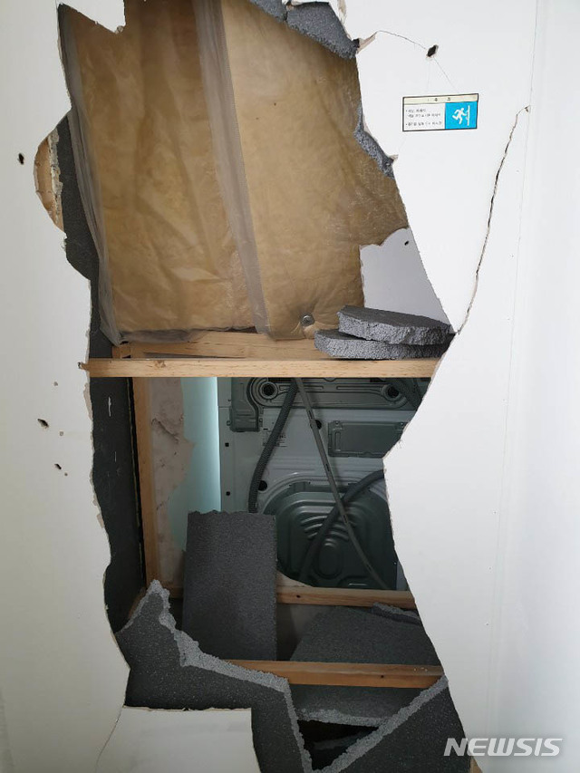 44층 아파트 불…아이 안은 엄마, 경량 칸막이 뚫고 대피
