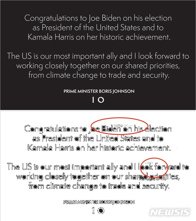 英존슨, 바이든 축하 트윗에 희미한 "트럼프 재선" "미래"