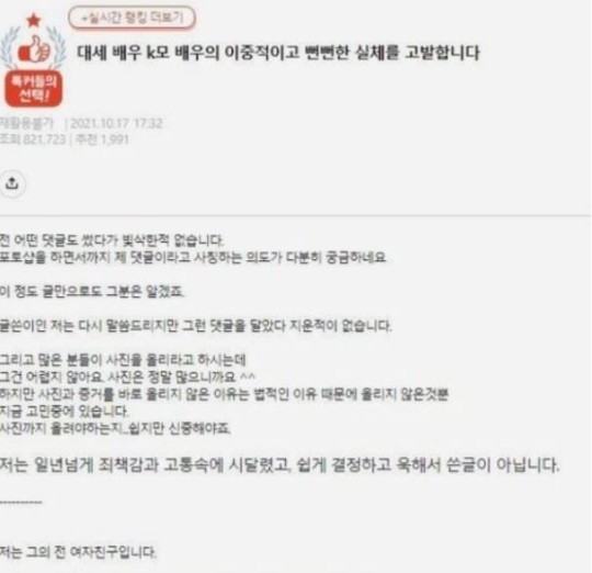 대세 K배우 전 여친 추가 폭로…"욱해서 쓴 글 아니다"