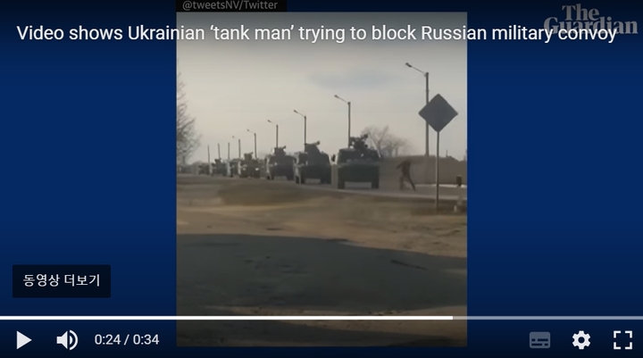 러 군용차량 맨몸으로 막아선 男 화제…"우크라판 탱크맨"