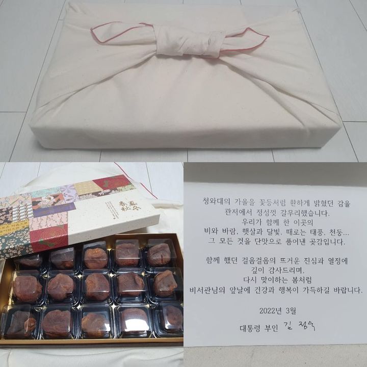 김정숙 여사, 靑비서관 51명에 손수 말린 곶감 선물해