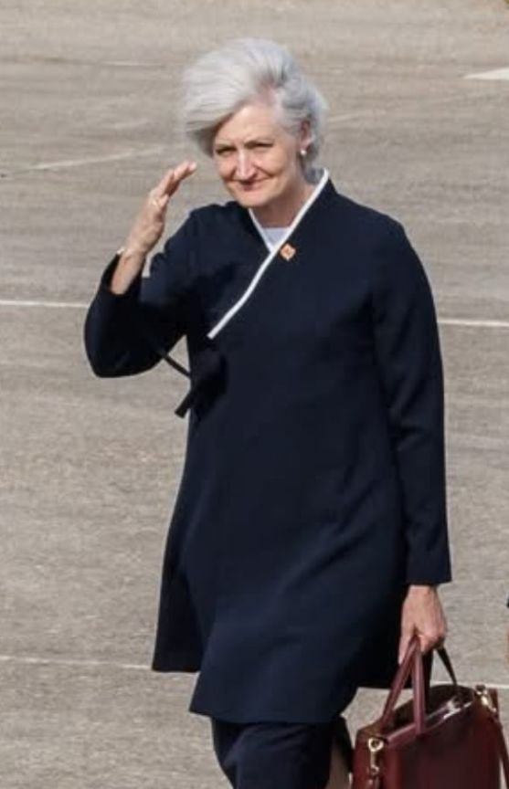 '양장 사이 빛난 한복'…은발의 여성, 李대통령 공항 배웅 화제