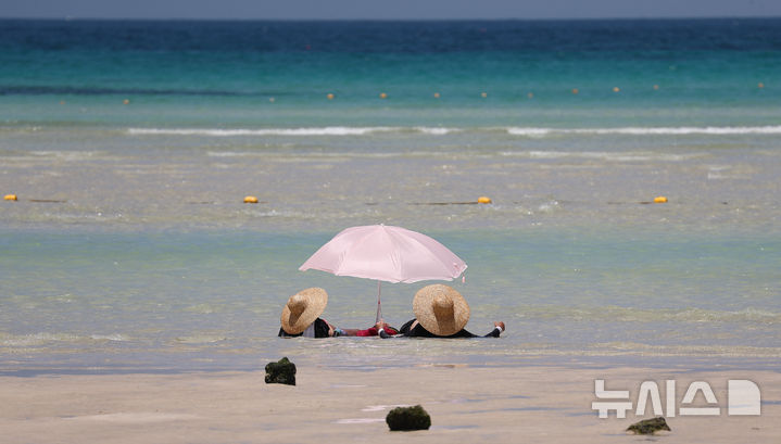폭염, 기세만 더…"더위 식혀요" 제주 해수욕장 북적북적[뉴시스 앵글]