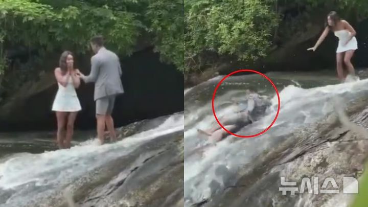 최악의 폭포 위 프러포즈…반지 꺼낸 순간 '미끌'(영상)