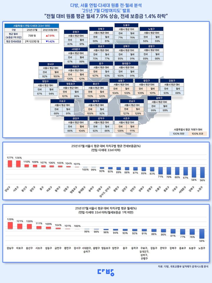 7월 서울 원룸 월세 7.9% 오른 73만원…강남구 94만원