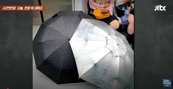서울 지하철서 우산 2개 널어 말린 중국인, 시민들 분노