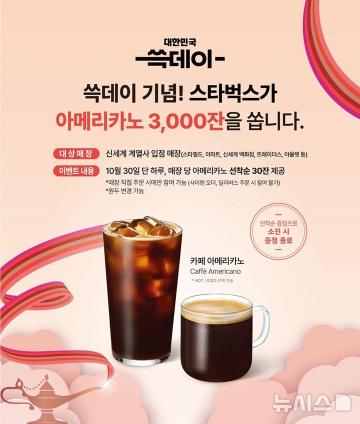 스타벅스, '쓱데이 기념' 내일 아메리카노 3000잔 쏜다