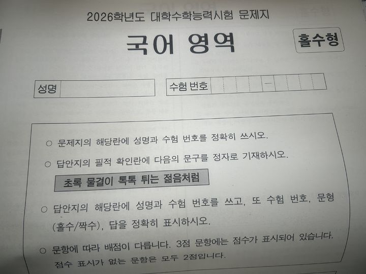 올해 수험생 필적 문구…"초록 물결이 톡톡 튀는 젊음처럼"