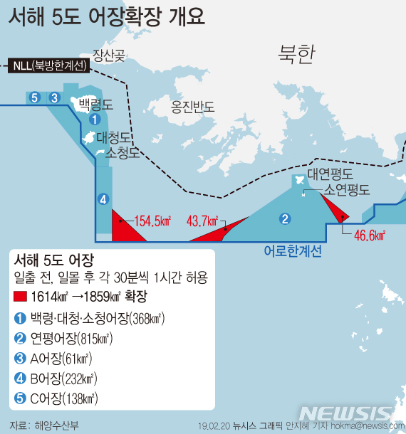 [그래픽]서해5도 어장 여의도 면적의 84배 확대…야간조업 1시간 허용
