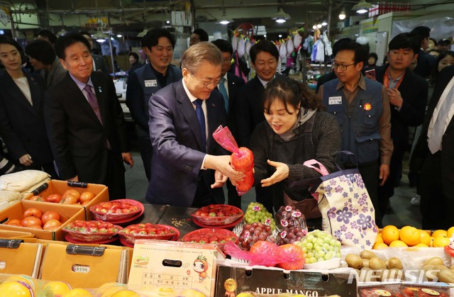 문 대통령, '대구 칠성시장 상인들과 함께'