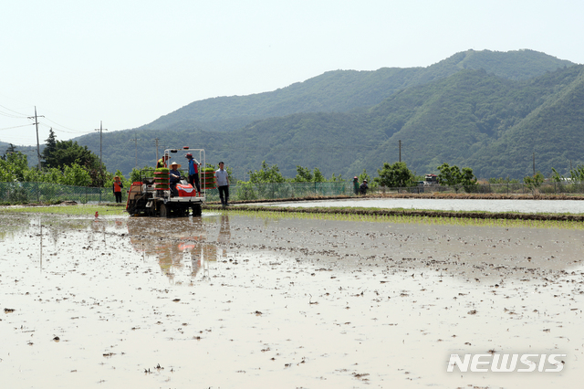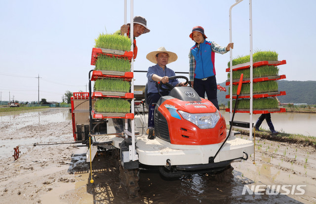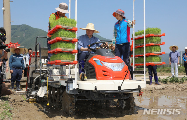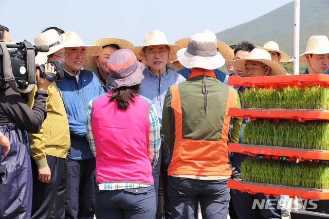 모판 옮기는 문재인 대통령