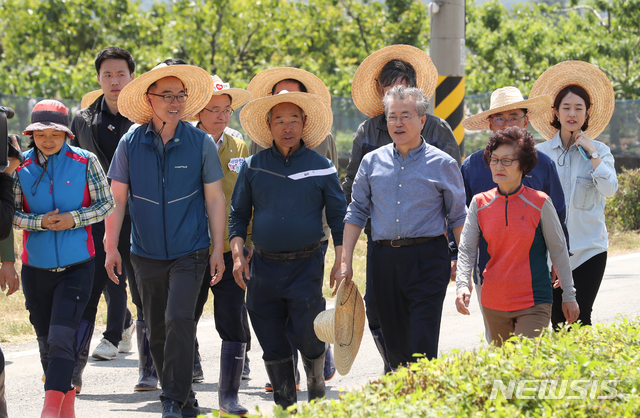 문재인 대통령, 옥산마을 모내기 현장 방문
