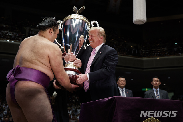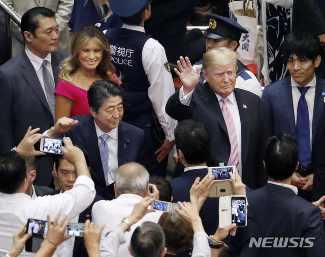 트럼프, 멜라니아와 함께 스모 경기 관람