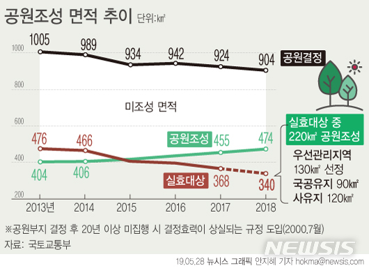[그래픽]미집행공원 실효 대상 340㎢…최대 220㎢ 공원 조성 계획