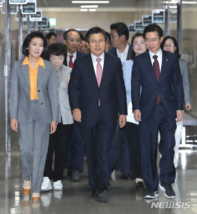 회의실 향하는 자유한국당 의원들