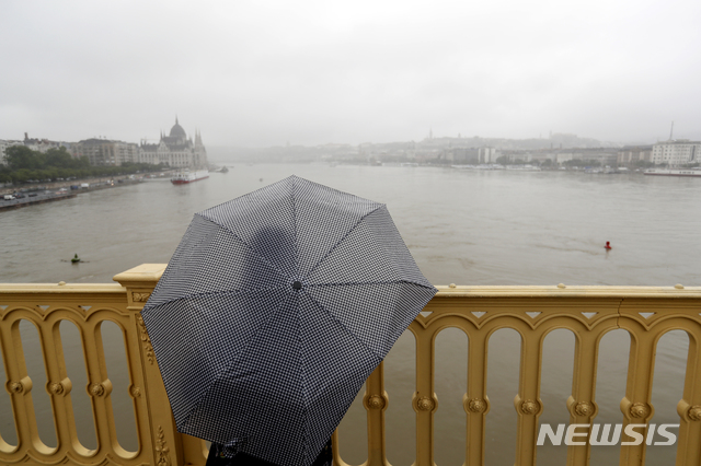 유람선 삼킨 다뉴브강 바라보는 여성