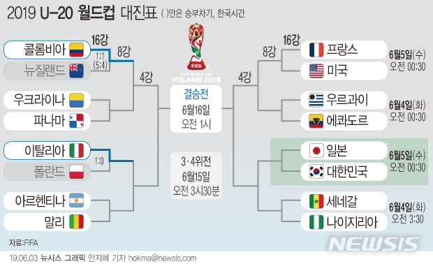 [그래픽]2019 U-20 월드컵 16강 대진표