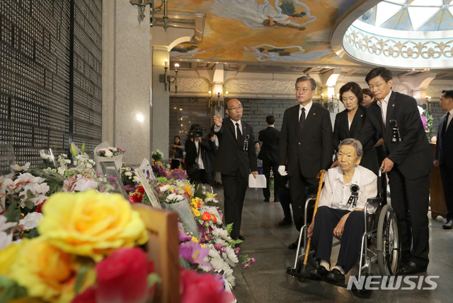 문 대통령 내외, '재일학도의용군 및 애국지사 위패 참배'