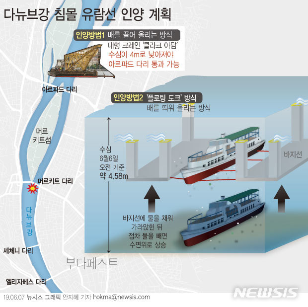 [그래픽]헝가리 다뉴브강 침몰 유람선 인양 방식