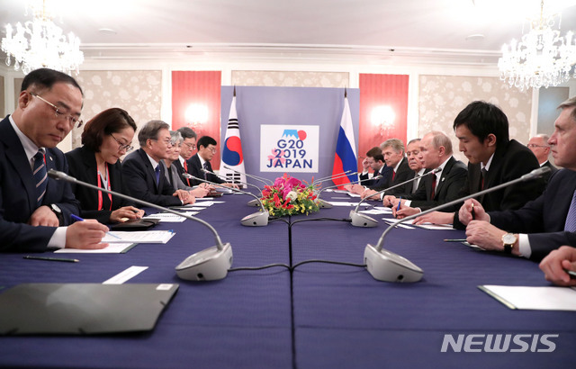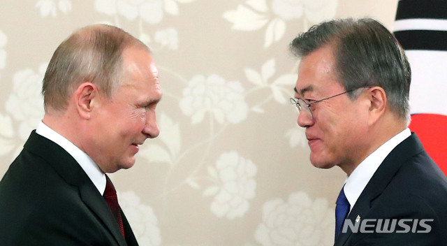 한·러 정상회담 하는 문재인 대통령과 푸틴 대통령
