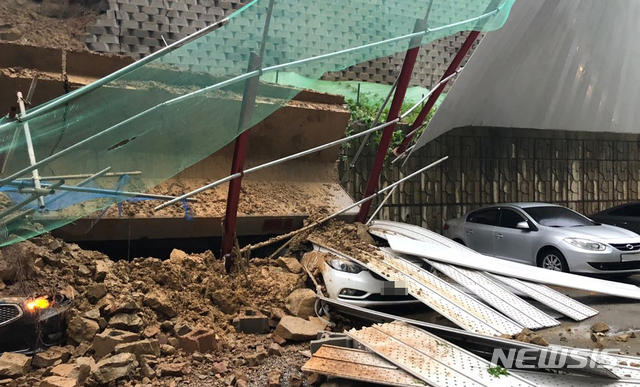 여수 한 아파트 인근 공사장 옹벽 붕괴