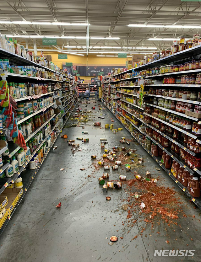 남가주 지진으로 진열대에서 떨어진 식료품