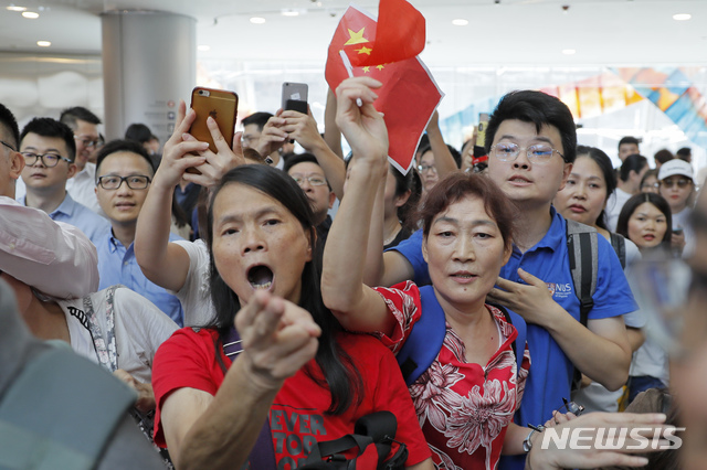 홍콩 민주화 시위대와 언쟁하는 친중 지지자들