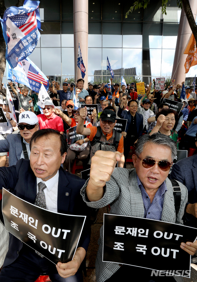 '문재인 OUT, 조국 OUT'