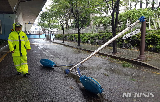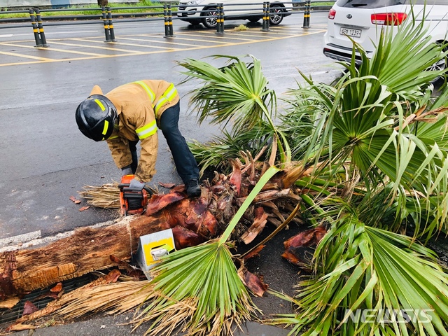 태풍 ‘타파’ 강풍에 도로로 쓰러진 가로수