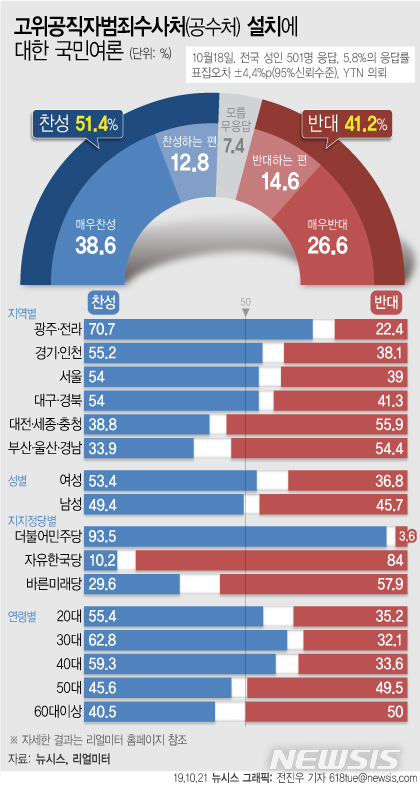 [그래픽]공수처 설치 여론, 찬성 51% vs 반대 41%