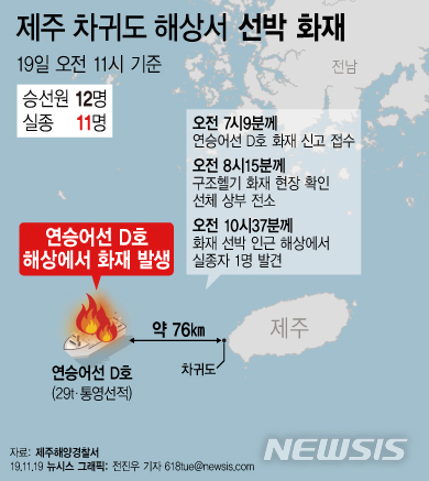 [그래픽]제주 차귀도 해상서 선박 화재