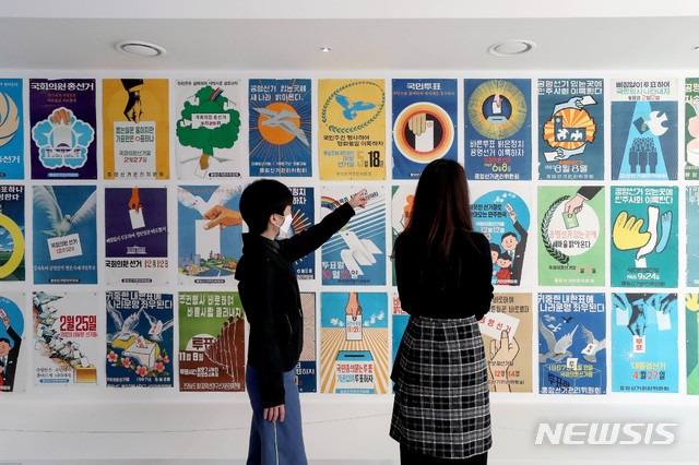 역대 국민투표 홍보 포스터 둘러보는 시민들