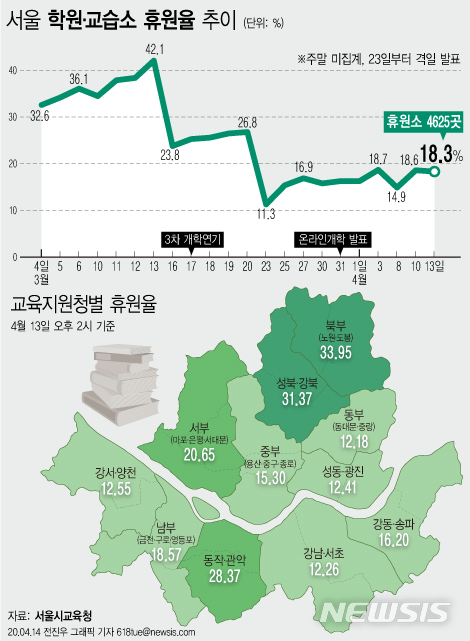[그래픽]서울 학원 휴원률 18.3%
