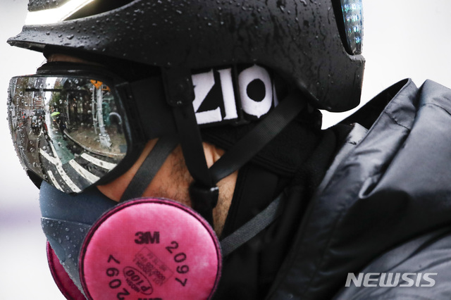 코로나19 예방 위해 중무장한 뉴욕 배달원