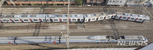 탈선 사고 발생 선로 옆으로 서행하는 KTX