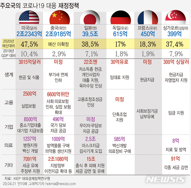 [그래픽]주요국의 코로나19 대응 재정정책