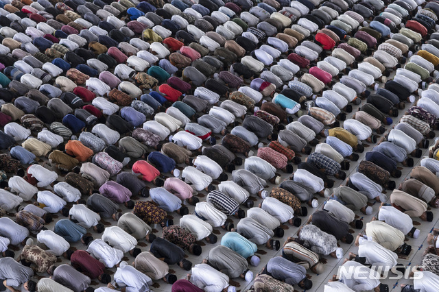 라마단 첫날, 기도하는 인도네시아 무슬림