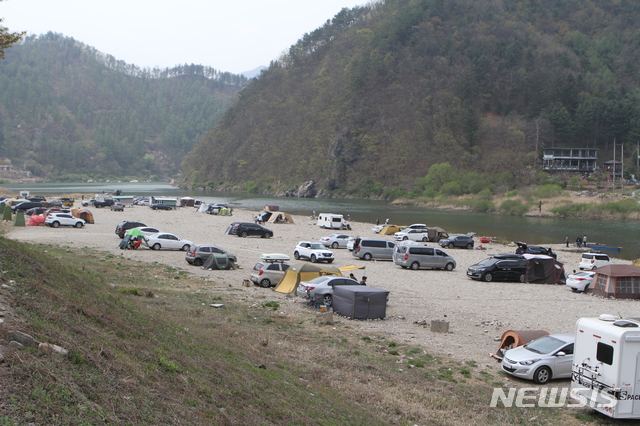 거리두기 첫 주말 홍천강 나들이객 북적