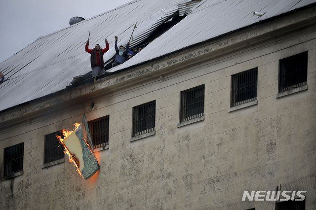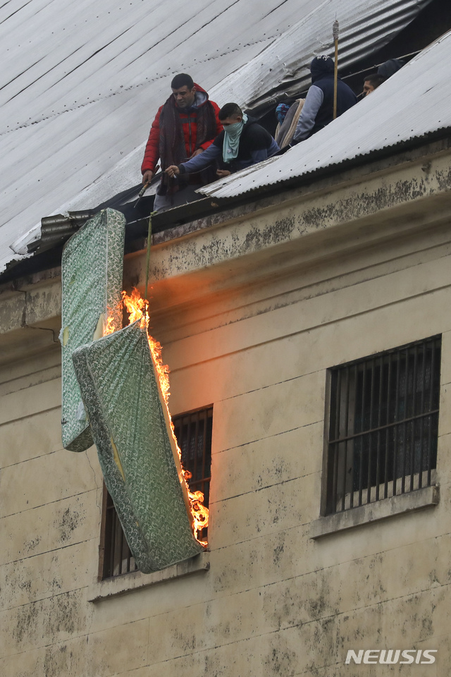 매트리스 태우는 아르헨 교도소 재소자들