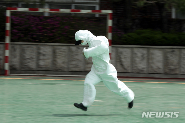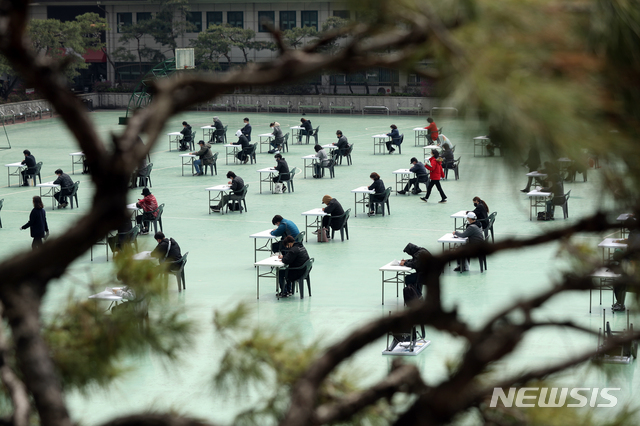 야외에서 보는 자격시험 '코로나19 예방 위해'