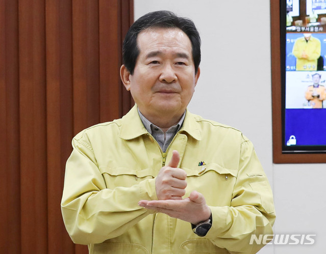 의료진에게 '존경과 자부심'의 수어 전하는 정세균 총리