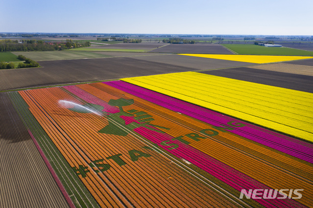 튤립밭의 코로나19 응원 메시지