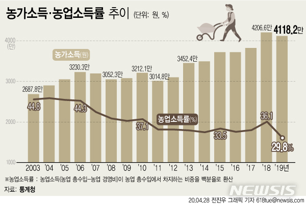 [그래픽]작년 농업소득률 역대 최저