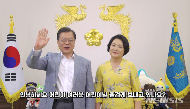 어린이들에 인사 전하는 문재인 대통령