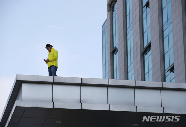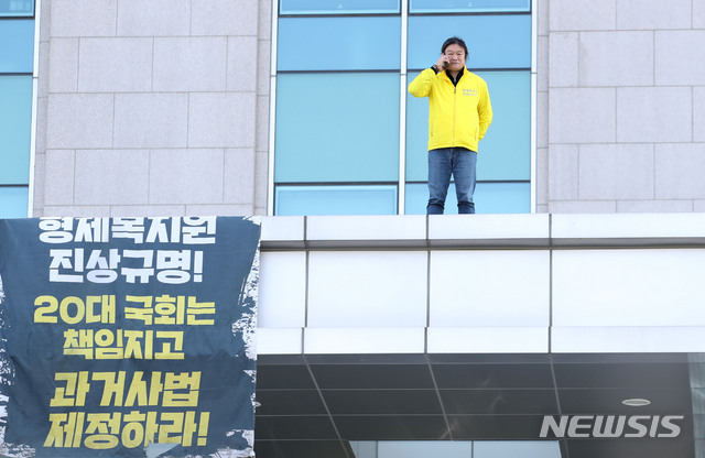 의원회관 캐노피에 올라간 형제복지원 피해자