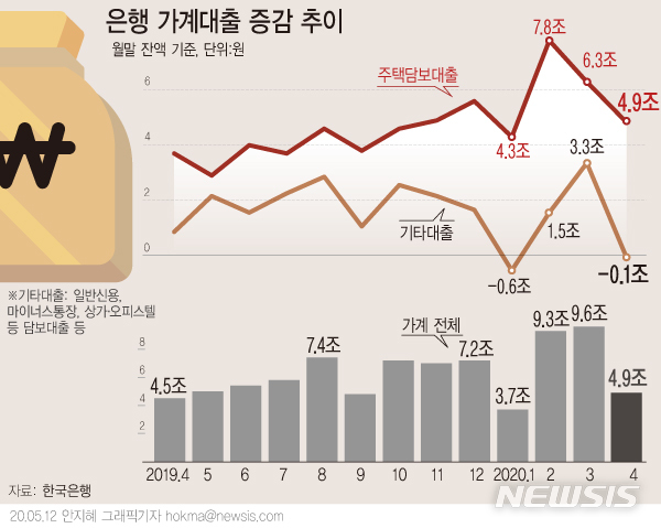 [그래픽]은행 가계대출 4.9조 증가