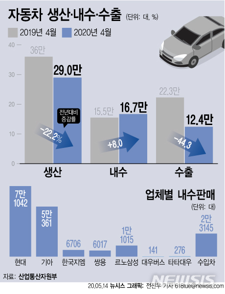 [그래픽]4월 자동차 생산·수출↓…내수는 반등