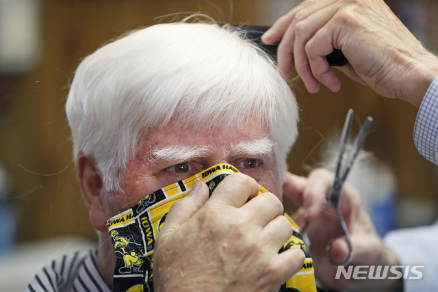 얼굴 가리고 이발하는 미 남성