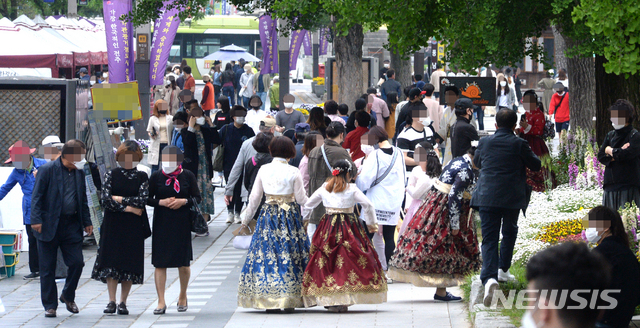 '생활 속 거리 두기에도 관광객 가득한 전주한옥마을'