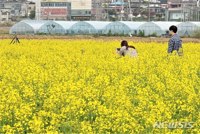 제천 의림지뜰에 만개한 노란 유채꽃